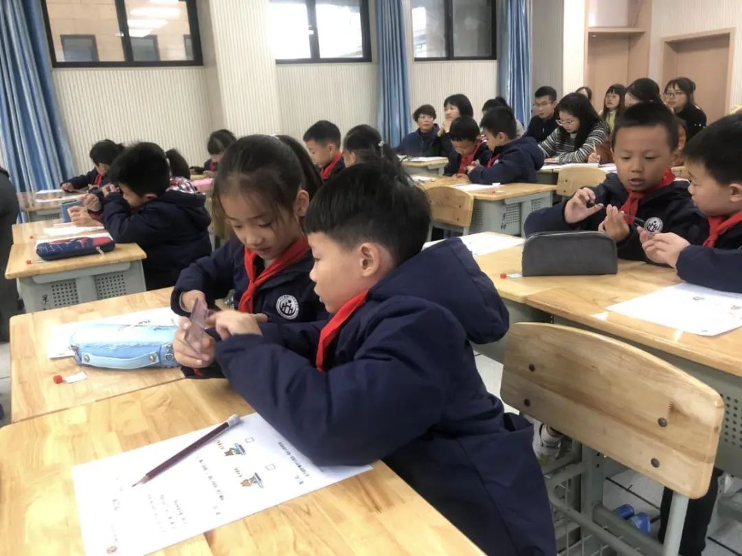 ▲ 利用現(xiàn)代教學(xué)技術(shù),投屏展示孩子們的學(xué)習(xí)成果。