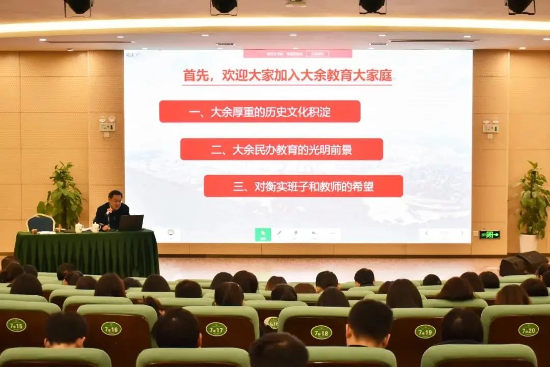 12月28日,高新·大余衡水實(shí)驗(yàn)學(xué)校特邀大余縣教科體局黨委書記、局長(zhǎng)曾凡偉到校,為全體教師生開展題為《立足教育熱土,厚植家國情懷》的專題講座。會(huì)議上,曾局長(zhǎng)從大余的歷史文化積淀、民辦教育前景兩方面簡(jiǎn)析,并對(duì)大余衡實(shí)的教師們寄予厚望。