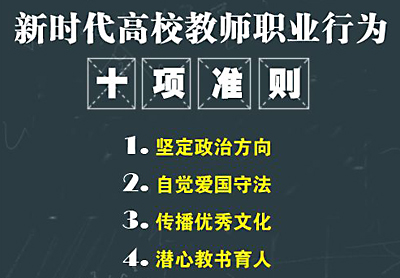 近日,教育部印發(fā)《新時(shí)代高校教師職業(yè)行為十項(xiàng)準(zhǔn)則》《新時(shí)代中小學(xué)教師職業(yè)行為十項(xiàng)準(zhǔn)則》《新...