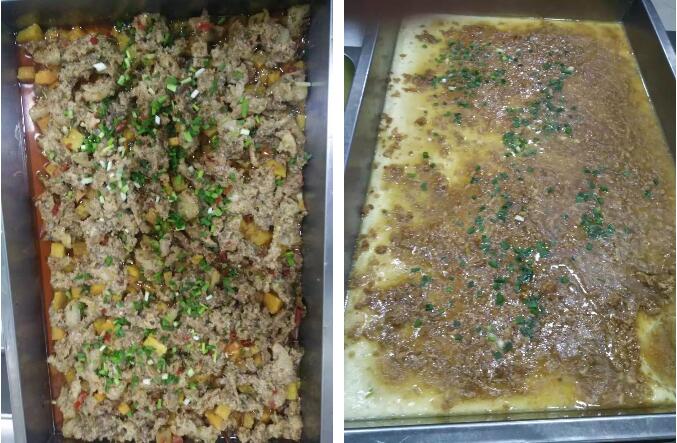 食堂從業(yè)人員全部持健康證上崗,上班時(shí)間統(tǒng)一規(guī)范著裝,所有人員佩戴工衣、工帽、口罩、圍裙,不得穿戴手表、飾物等。他們嚴(yán)格按照《餐飲服務(wù)食品安全操作規(guī)范》進(jìn)行加工操作,做到食物燒熟煮透、生熟分開,嚴(yán)格落實(shí)用具分類制度,防止食物交叉污染。師生飯菜同時(shí)烹飪。