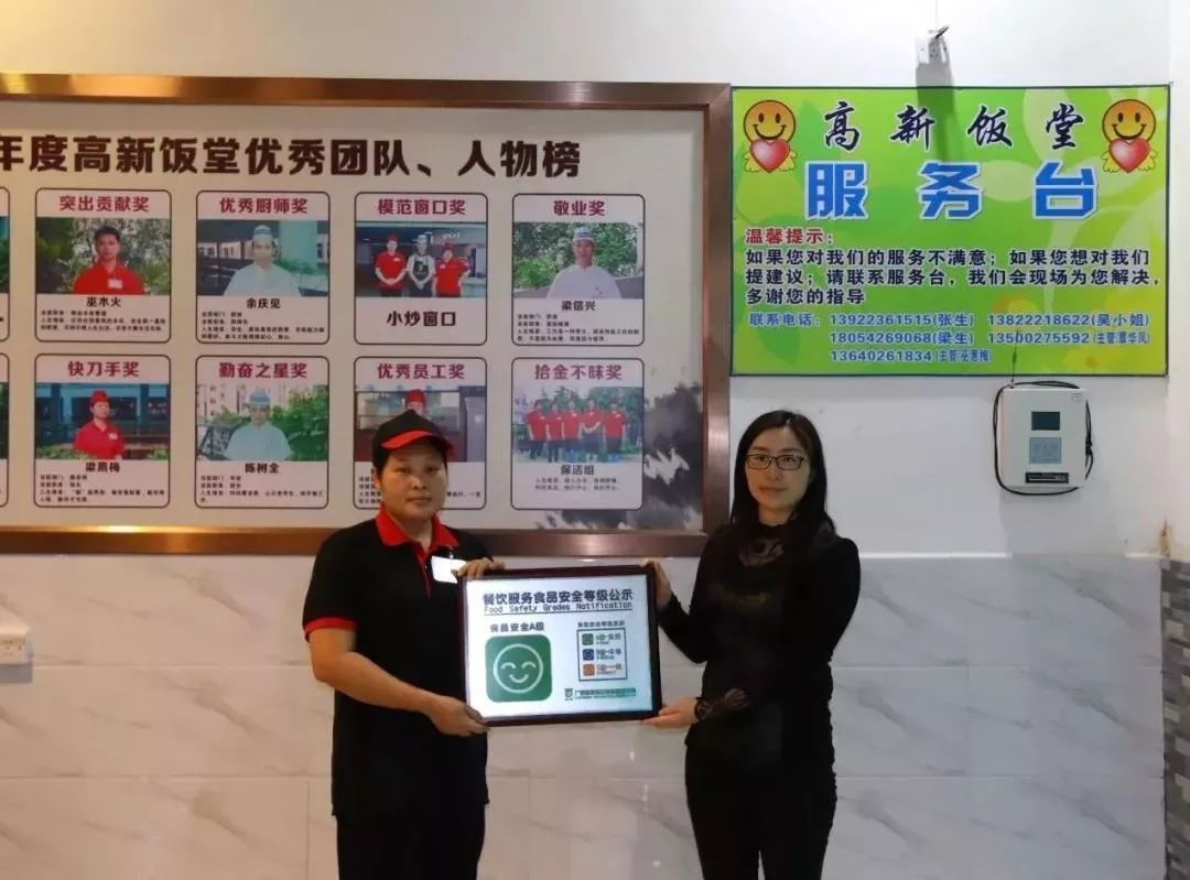 高新技校的兩所食堂已經(jīng)連續(xù)幾年被廣東省食品藥品監(jiān)督管理局評(píng)為“餐飲服務(wù)食品安全量化分級(jí)管理A級(jí)示范食堂”,學(xué)校所有的原料供應(yīng)商都經(jīng)公開招標(biāo)進(jìn)行采購,保證食品安全和質(zhì)量。從食材采購到加工、供餐進(jìn)行全過程數(shù)字化監(jiān)控。