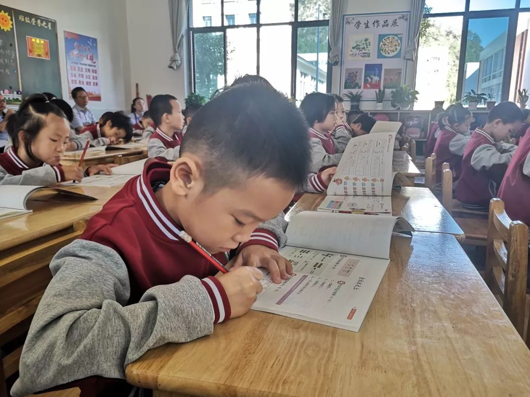 在朗朗的書聲中,丁惠臻老師走進(jìn)了一(2)班的教室。丁老師用“金木水火土”作為小組名稱,既鞏固了舊知識,又調(diào)動了孩子的積極性。通過講解象形文字,孩子們對文字產(chǎn)生敬畏之心。讓生字開花又豐富了學(xué)生的詞匯量。運用田字格“九點式”書寫方法,指導(dǎo)學(xué)生規(guī)范書寫。