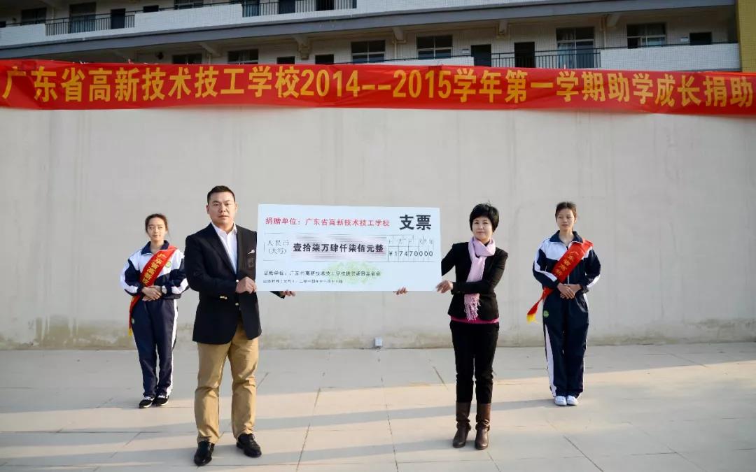 廣東省高新技術(shù)高級(jí)技工學(xué)校發(fā)展基金會(huì)成立于2012年,由張?zhí)炫嘈iL(zhǎng)發(fā)起,基金會(huì)堅(jiān)持中國(guó)共產(chǎn)黨的領(lǐng)導(dǎo),踐行社會(huì)主義核心價(jià)值體系,遵守社會(huì)風(fēng)尚,堅(jiān)持以“資助品學(xué)優(yōu)良的特困學(xué)生,幫助他們擺脫困境,激勵(lì)他們發(fā)奮讀書、立志成才;全力關(guān)愛(ài)困難教職工,傳遞溫暖、愛(ài)心互助”為愿景。2014年,張?zhí)炫嘈iL(zhǎng)向基金會(huì)捐助17.5萬(wàn)元。