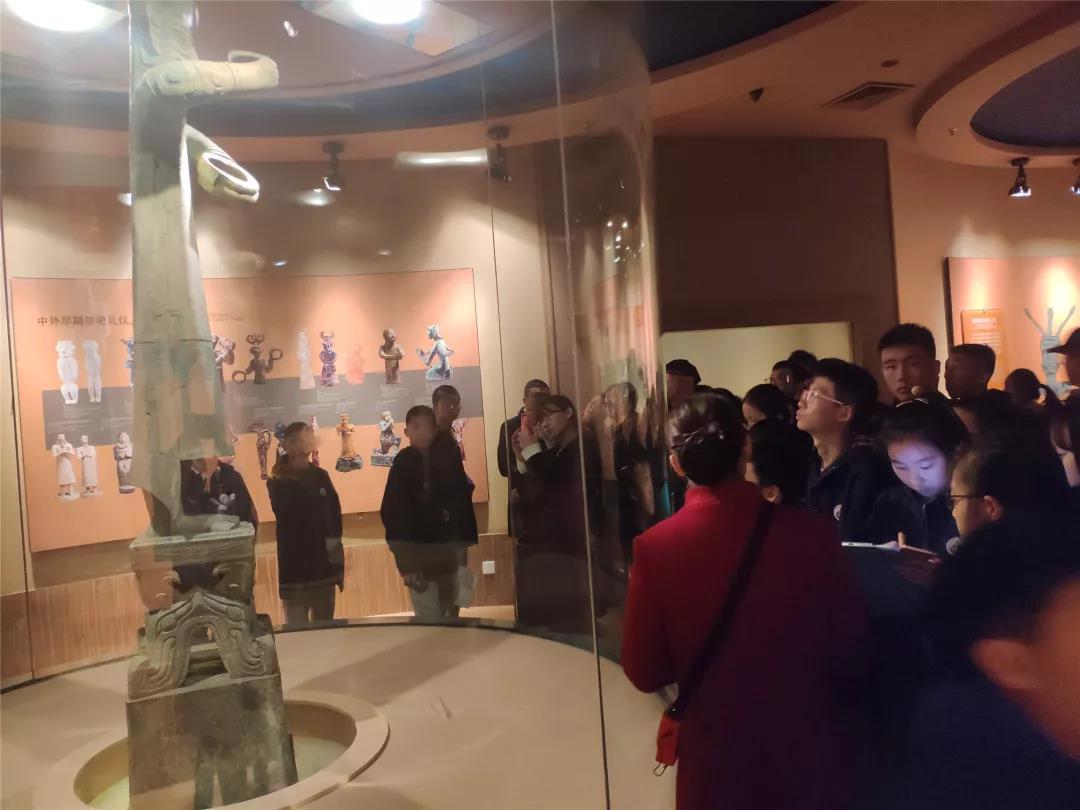 在解說員的講解下,同學(xué)們積極提問、認(rèn)真聆聽、仔細(xì)記錄。一件件珍貴文物展現(xiàn)在同學(xué)們眼前,讓人無(wú)不贊嘆古蜀人民勤勞智慧,尤其是在沒有發(fā)達(dá)的機(jī)械情況下,僅憑雙手打磨的玉石器物和那鎮(zhèn)館之寶青銅神樹!連隨行的老師都說,“連我也想研究研究古蜀文明啦!”