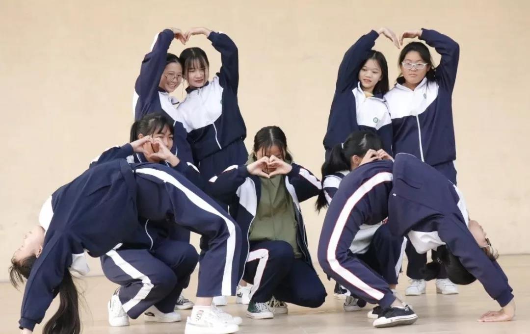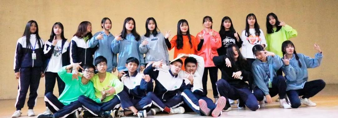 在課上她們認真努力,對著鏡子一個動作一個動作地過關(guān) ,為了跟上節(jié)奏一遍一遍的喊拍子練習,會長郭麗碧同學說:“我們整天嘻嘻哈哈的,總之有我們在氛圍就不會尬,社團人雖少,但我們很用心,很團結(jié),很開心!當然要是來些小哥哥會更好哈!加油!