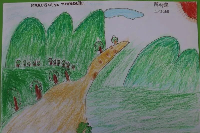 孩子們做了許多和丫山有關(guān)的海報(bào),關(guān)于丫山他們也有很多話要說(shuō)。他們用簡(jiǎn)單的英語(yǔ)在海報(bào)上表達(dá)了他們關(guān)于丫山的感受。