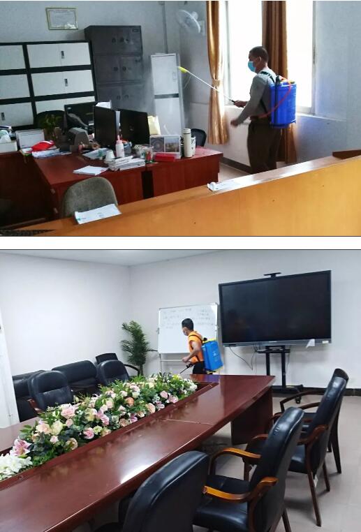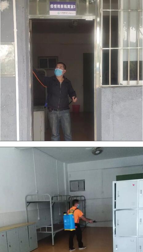 清潔消毒工作每天早上8點開始,對目前有人員出入和逗留的場所會每天消毒一次,如校門值班室、總務處、已返校教職工宿舍。已返校人員每天接受三次體溫檢測。校門崗將嚴格執(zhí)行到訪人員信息登記、車輛檢查、體溫檢測。