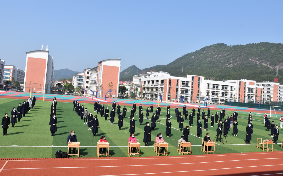 教師們著裝整齊,隔屏同頻行注目禮