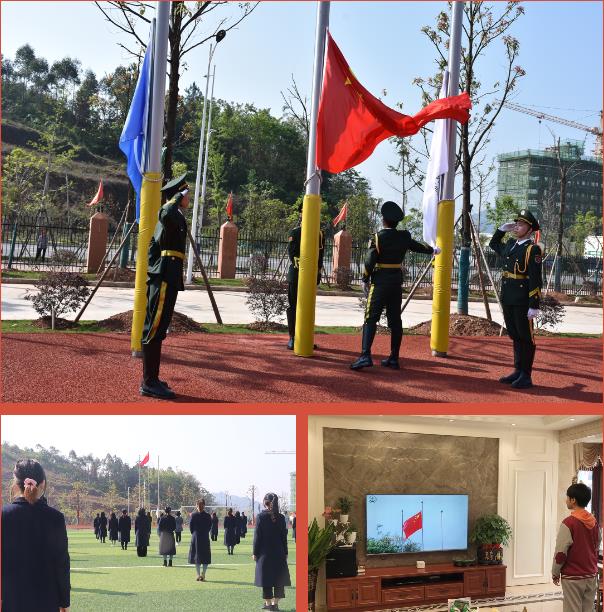 春光明媚,花開正好,旗手在學(xué)校操場(chǎng)上將鮮艷的五星紅旗冉冉升起,全體師生起立,高唱國(guó)歌,隔空向國(guó)旗行注目禮。