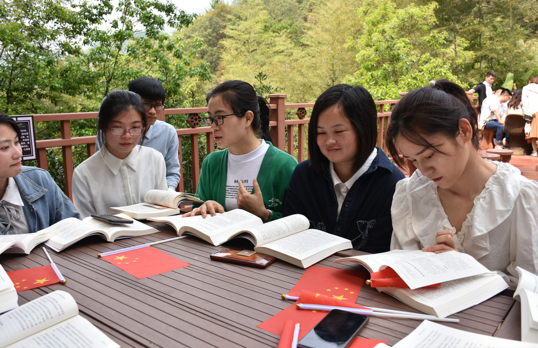 “獨樂樂不如眾樂樂”,閱讀樂趣之一,是通過分享產(chǎn)生心靈和思維上的碰撞和沖擊,以取得更大的收獲和超越平常的啟發(fā)。小學(xué)部一行人到達丫山臥龍谷,分四小組在各自休息區(qū)開展了《正面管教》讀書沙龍活動,老師們各抒己見,收獲頗多。