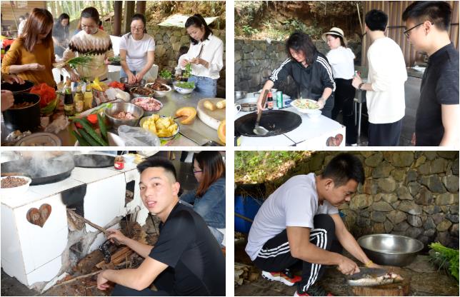 讀書沙龍活動結(jié)束,大家集體殺到A哆自助廚房,吃貨們期待已久的柴火飯開始。隨著鐘校的一聲令下,大家一個個化身廚房小能手,有燒火的、洗鍋洗碗的、洗菜切菜的、燒烤的、還有燒飯的大廚,整個場面熱火朝天,三十多人的飯菜,僅用時40多分鐘就完成了,充分體現(xiàn)了大余衡實小學(xué)部老師們的協(xié)作能力、凝聚力、戰(zhàn)斗力。