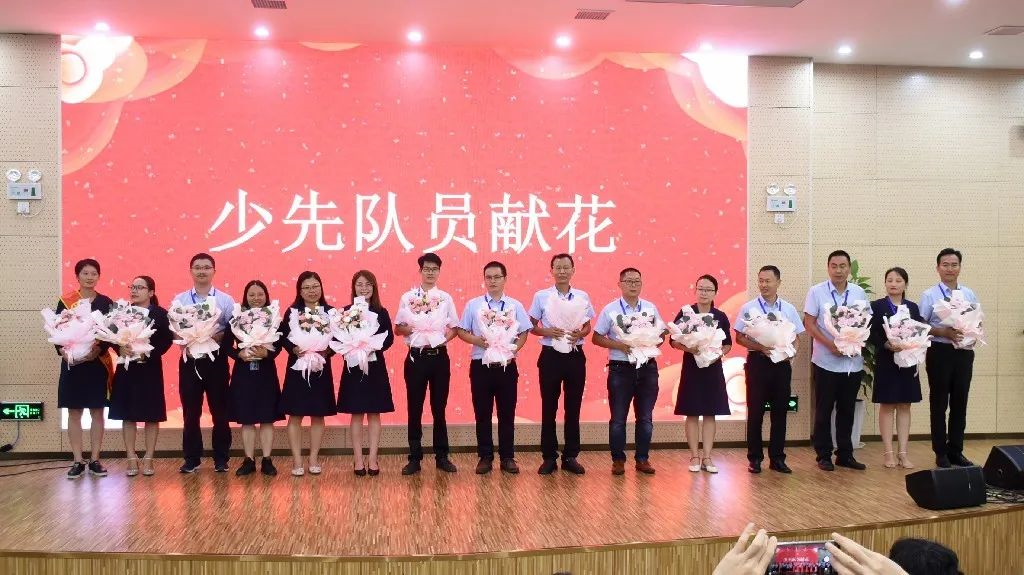 少先隊(duì)員們給教師家長代表獻(xiàn)花