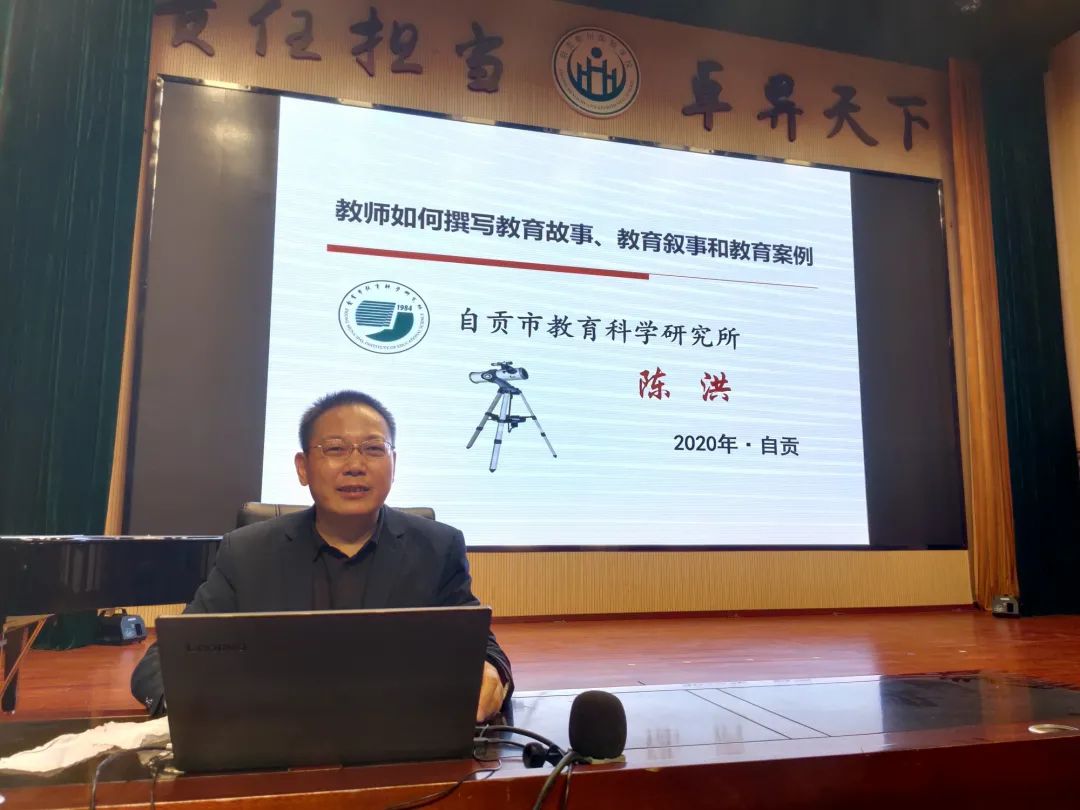11月10日,學校邀請到正高級教師、自貢市高層次人才“雙千計劃”優(yōu)秀專家、自貢市教育科學研究所理論室陳洪主任為全校教師作了題為《教師如何撰寫教育故事》和《核心素養(yǎng)下的深度學習》專題講座,300余名專職教師聆聽講座。