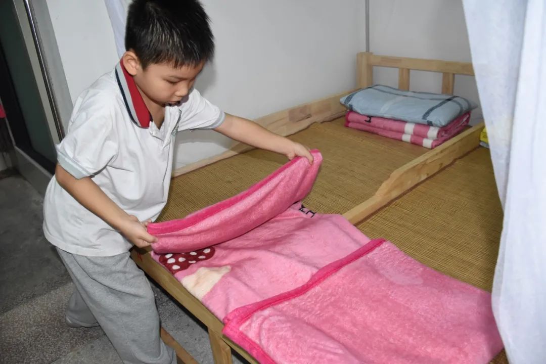 旗下學(xué)校實(shí)行寄宿制管理,培養(yǎng)孩子獨(dú)立自理能力,包括整理衣服、收拾房間、整理書包等。