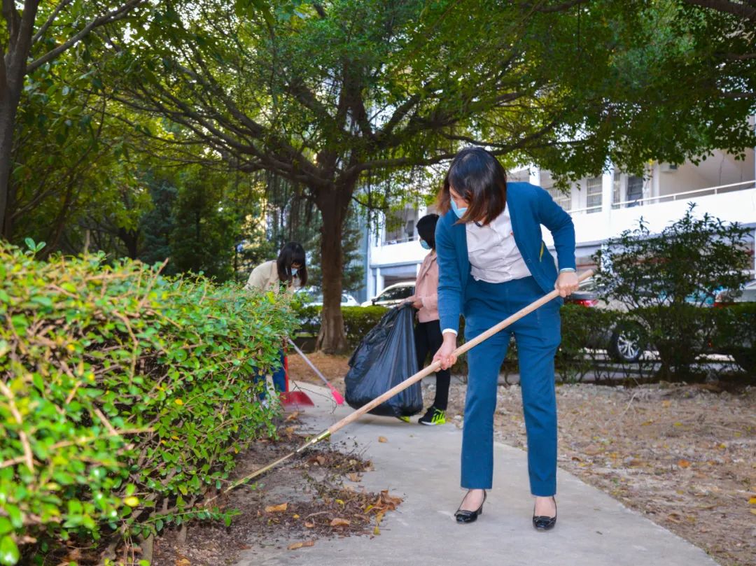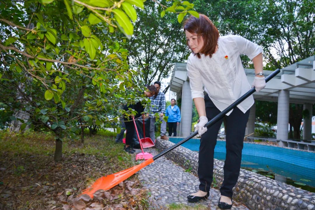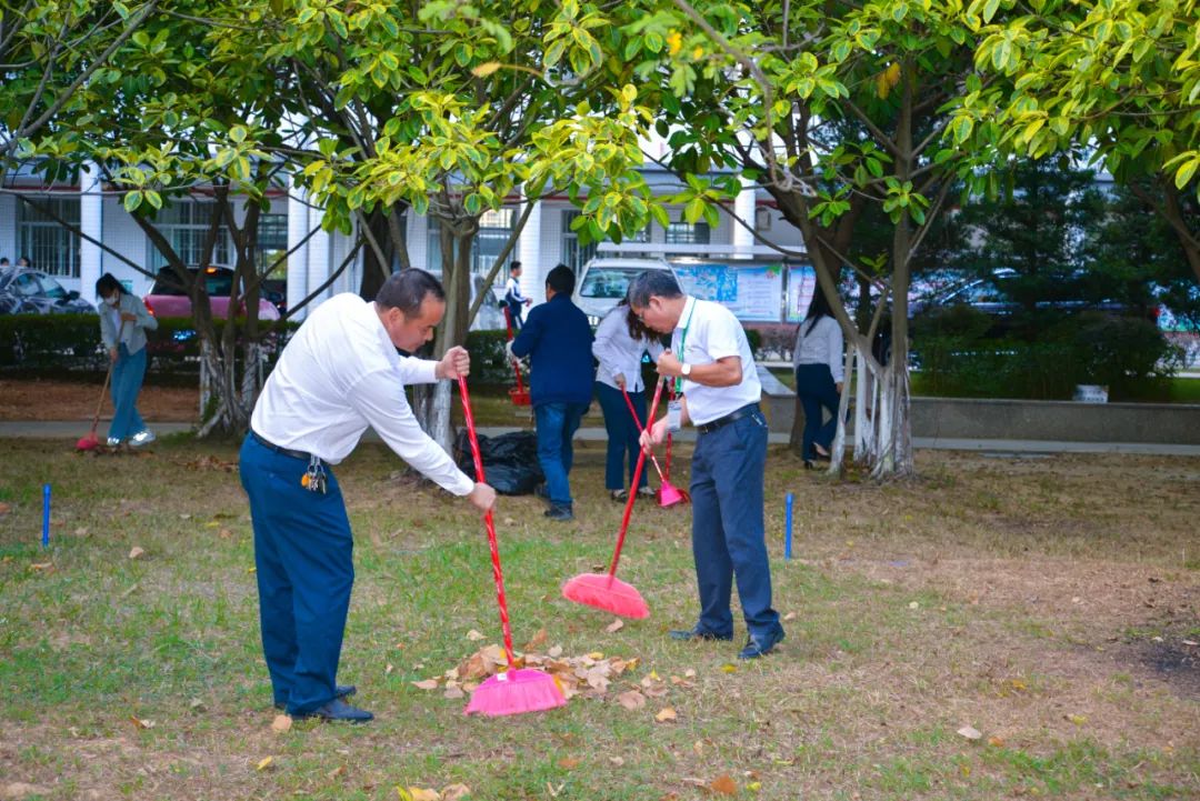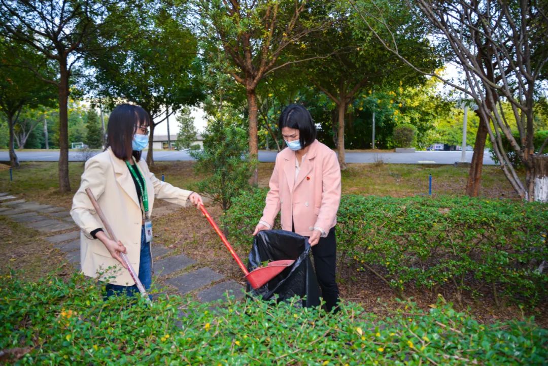 黨員們佩戴黨徽,情緒高漲,熱情飽滿,清理中堅樓小樹林及厚德大道等區(qū)域綠化帶中的落葉,不放過任何死角,大家勞動的身影猶如一道亮麗的風景。