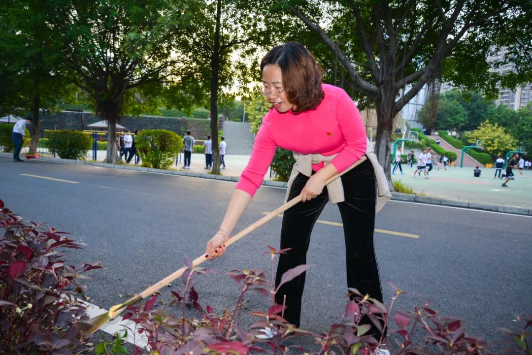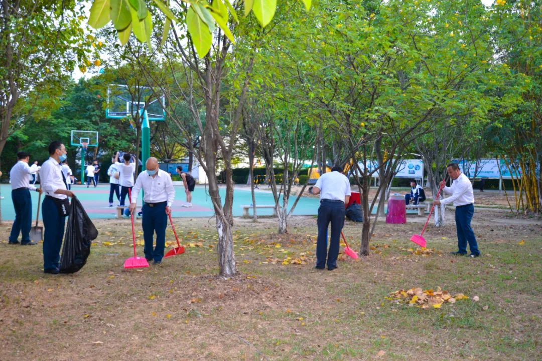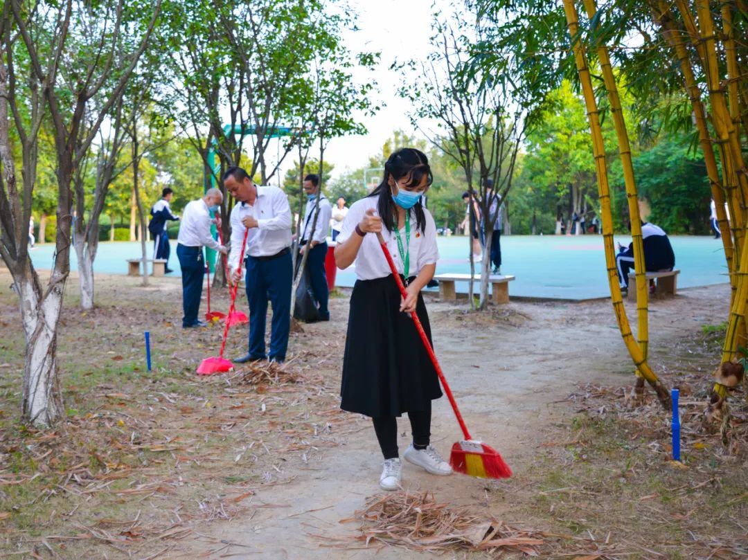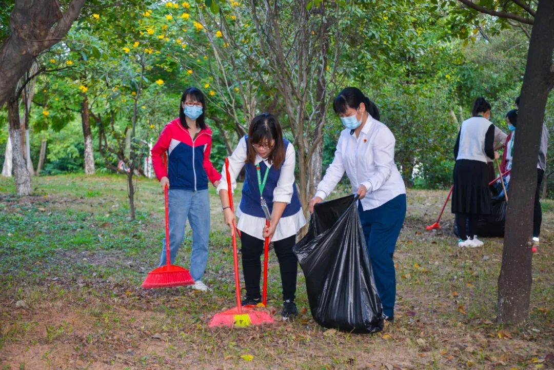 黨員們佩戴黨徽,情緒高漲,熱情飽滿,清理中堅樓小樹林及厚德大道等區(qū)域綠化帶中的落葉,不放過任何死角,大家勞動的身影猶如一道亮麗的風景。