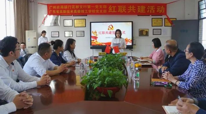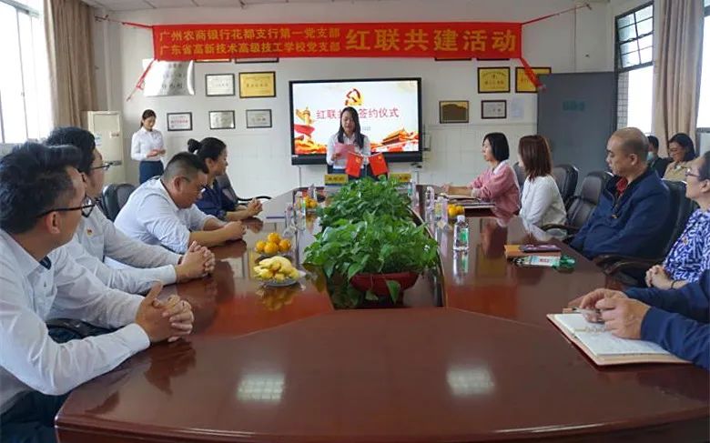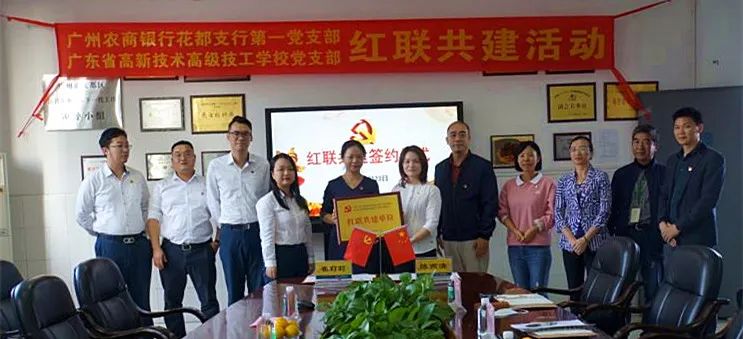 為進一步加強我校黨組織建設(shè),提升新形勢下黨支部工作成效,實現(xiàn)黨建優(yōu)勢互補,我校黨支部與廣州農(nóng)商銀行花都支行第一黨支部舉行“紅聯(lián)共建”簽約儀式,開展黨建共建活動。