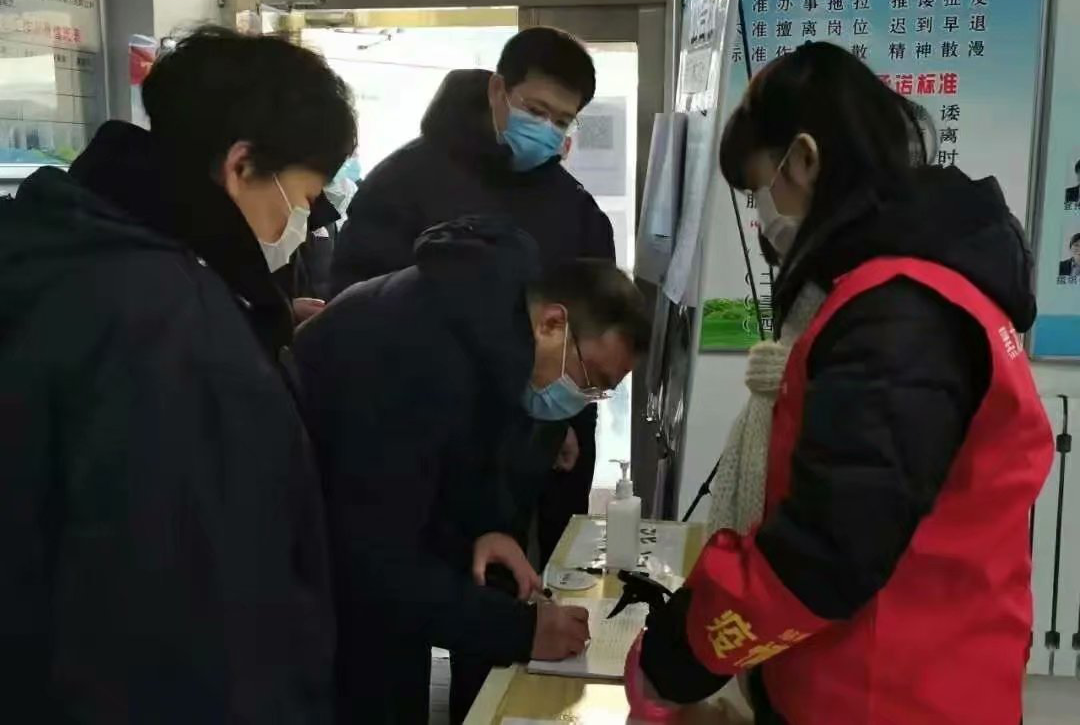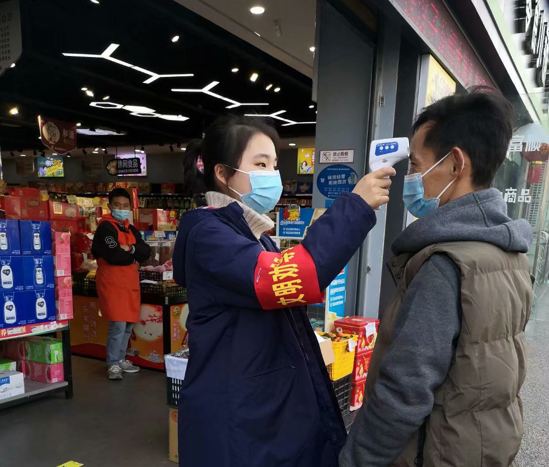 ▲ 協(xié)助社區(qū)開展入戶登記工作,為居民進(jìn)行體溫監(jiān)測(cè),并簽署居家承諾書。