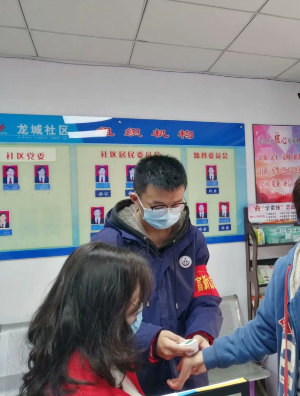 ▲ 協(xié)助社區(qū)做好小區(qū)防疫登記和宣傳工作。